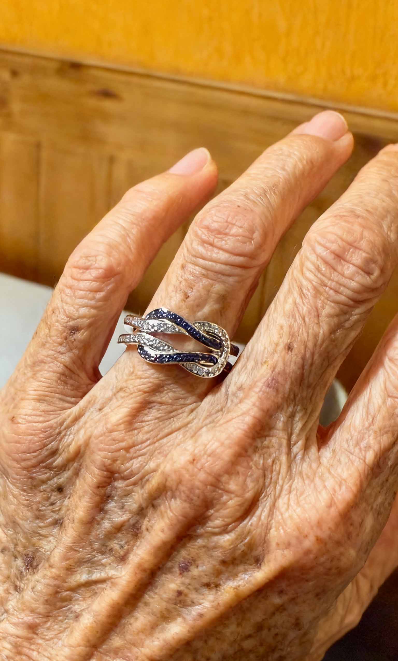 The perfect symbol of forever! This elegant Infinity 2 Tone Ring makes an unforgettable wedding band, anniversary gift, or promise ring—she'll cherish its 0.39 CT dazzling sapphires and meaningful infinity design!