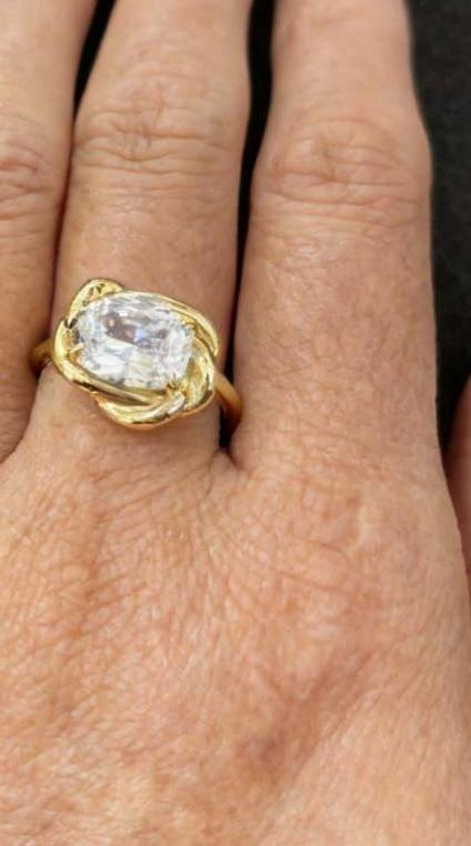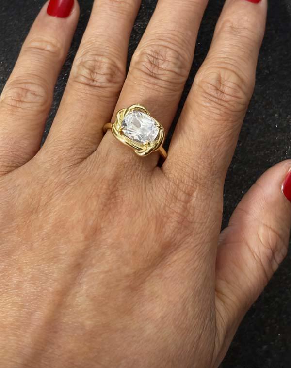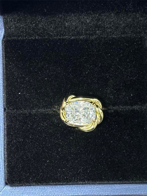 【Design】Discover our elegant infinity knot design featuring this stunning Unique Moissanite Engagement Rings, this magnificent Unique Moissanite Engagement Rings showcases a 4.00 CT cushion-cut moissanite in 18K Gold Plated Sterling Silver weighing 5.10g!