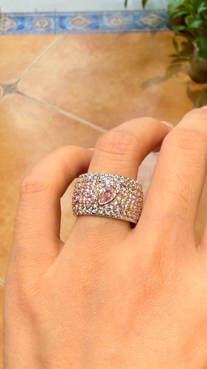 The Pink Stone Multi Row Band is more than a ring—it’s a story of love’s depth and complexity. With its vibrant pink and white gemstones in pear, emerald, and round cuts, it captures the essence of true connection. Whether it’s a gift to celebrate an anniversary, engagement, or simply your unwavering bond, this band is a breathtaking reminder of shared moments. Let the Pink Stone Multi Row Band be a part of your love story.