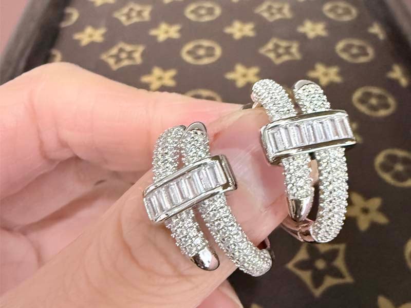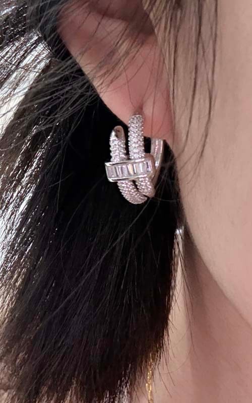 【Design】Discover our stunning Unique Hoop Earrings, masterfully crafted with 2.10 carats of micro-pavé round and baguette-cut white sapphires in premium 925 Sterling Silver for exceptional brilliance!