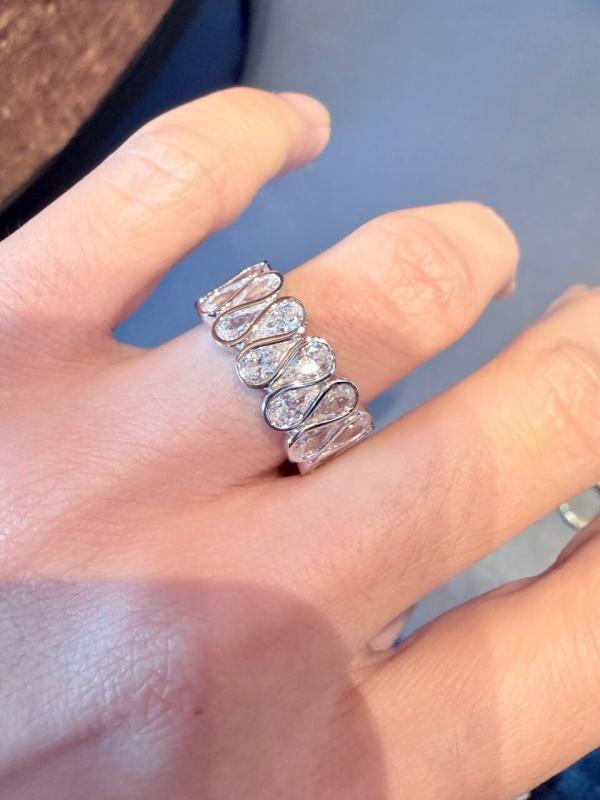 【Great Gift】 This Pear Cut Eternity Wedding Band represents the ultimate anniversary or bridal upgrade gift. The nickel-free Pear Cut Eternity Wedding Band combines innovative security with timeless elegance for the modern bride.