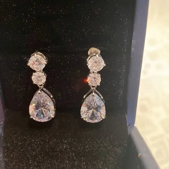 【Design】Experience elegance with our "Pear Created White Sapphire Drop Earrings" from italojewelry. Plated with sterling silver and weighing 5.90g, these exquisite earrings feature pear and round-cut white sapphire stones, showcasing a harmonious blend of beauty and sophistication. With their graceful design and timeless appeal, these earrings symbolize love's tender embrace, making them the perfect expression of affection and romance. Adorn yourself or your loved one with these earrings to celebrate the power of love and create everlasting memories.