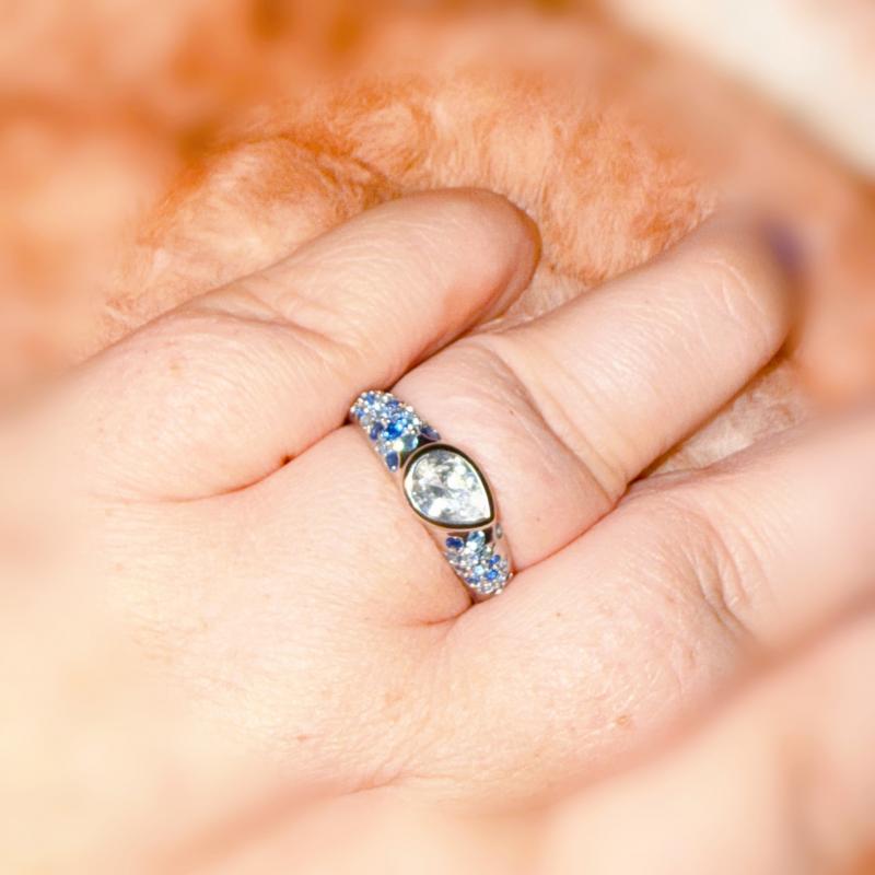 【Great Gift】 As a symbol of calm and distinctive love, this exquisite Pear Cut Blue Sapphire Ring makes a perfect gift, ensuring this Pear Cut Blue Sapphire Ring will be a cherished and serene emblem of your union.