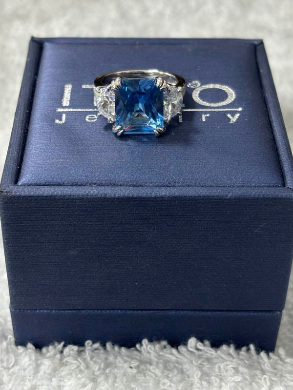 Italo Radiant Cut Blue Topaz Three Stone Engagement Ring