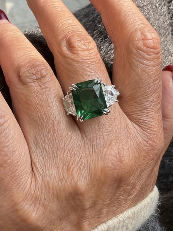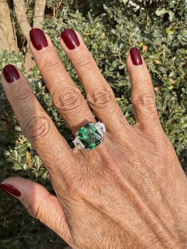 Italo Radiant Cut Emerald Green Ring Unique Engagemeng Ring