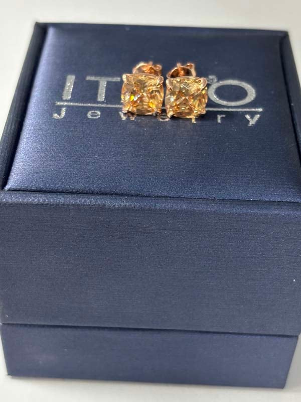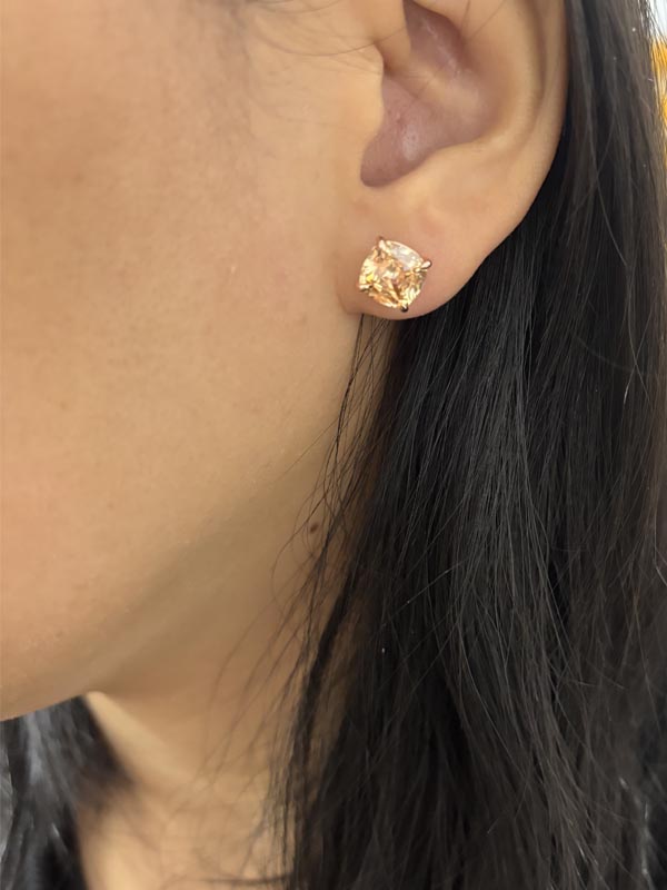 Italo Rose Gold Cushion Cut Champagne Stud Earrings For Women