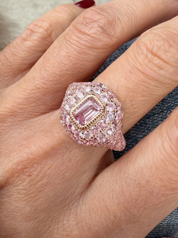 Italo Rose Gold Micro Pave Emerald Cut Pink Sapphire Ring For Women