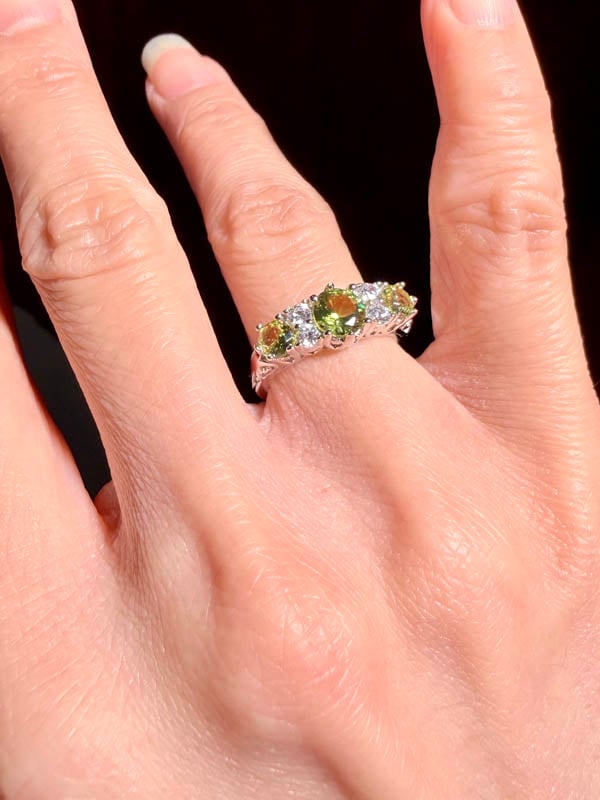 【Design】Adorn your hand with our stunning Peridot Filigree Wedding Band, masterfully crafted in 925 Sterling Silver and featuring 1.24 CT of vibrant round-cut peridots set within an exquisite filigree pattern, making this Peridot Filigree Wedding Band a timeless symbol of elegance.