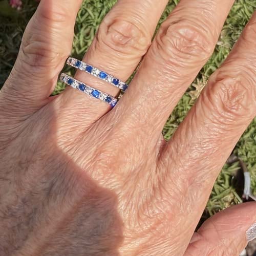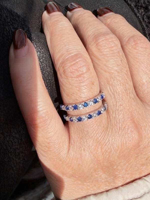 【Design】Admire the elegant dual-tone design of this Enhancer Wedding Band, crafted from 925 Sterling Silver and featuring 0.78 CT. TW of brilliant round-cut blue and white sapphires—this stunning Enhancer Wedding Band symbolizes eternal love!