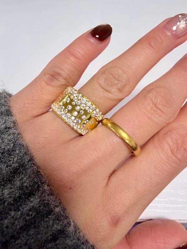【Design】 Embrace modern romance with our Wide Wedding Band, masterfully crafted in 18K gold plated sterling silver in a substantial 11.5mm width and set with a scattered waterfall of 1.29 CT round sapphires, making this Wide Wedding Band a true statement piece of art.