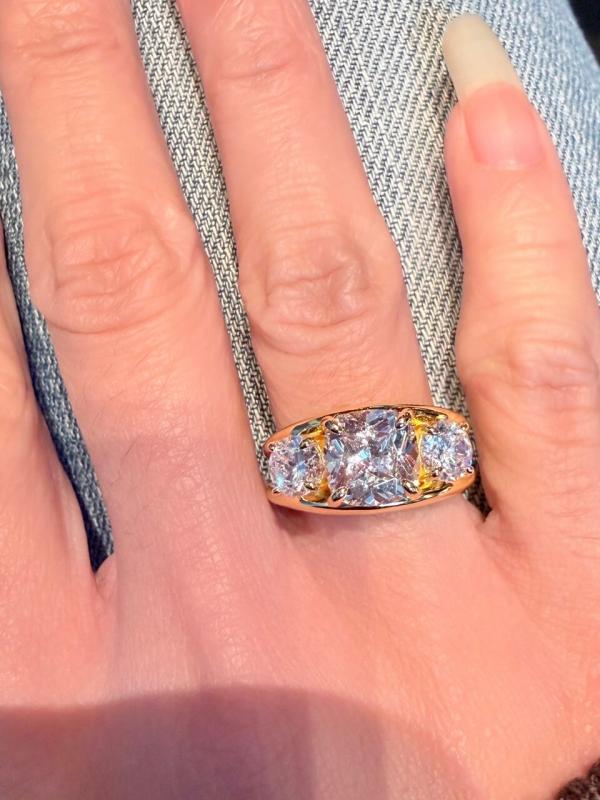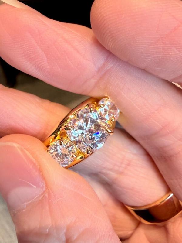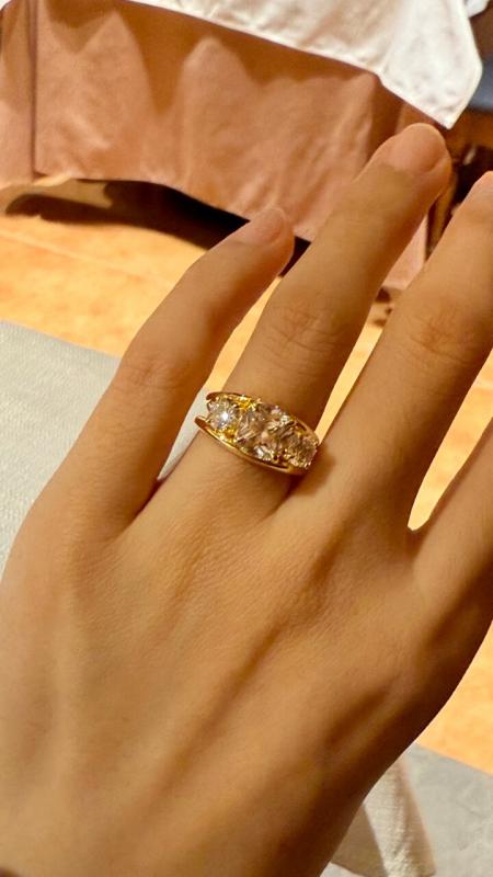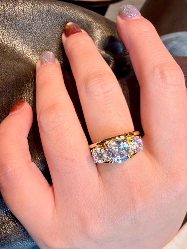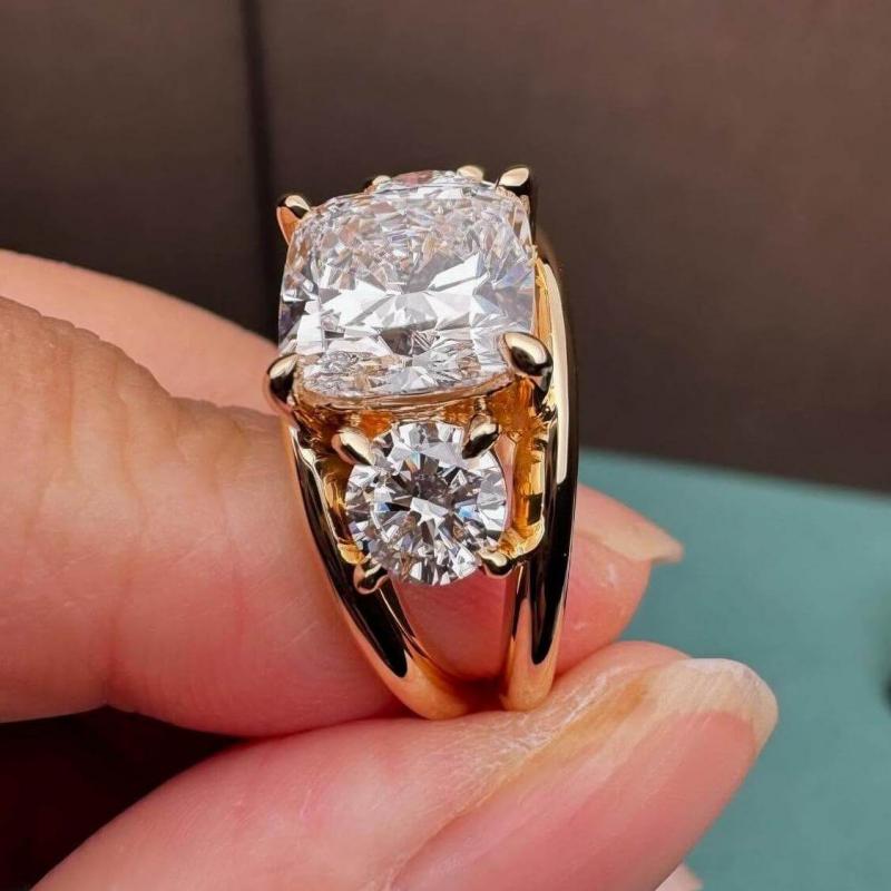 【Design】 Marvel at Italo's exquisite Split Shank Cushion Cut Ring, showcasing a magnificent 3.00 CT cushion-cut center stone (8x8mm) accented by two brilliant round stones totaling 4.12 CT. The Split Shank Cushion Cut Ring features an elegant split shank design in 18K gold-plated sterling silver, enhanced with rhodium plating for unparalleled sparkle.