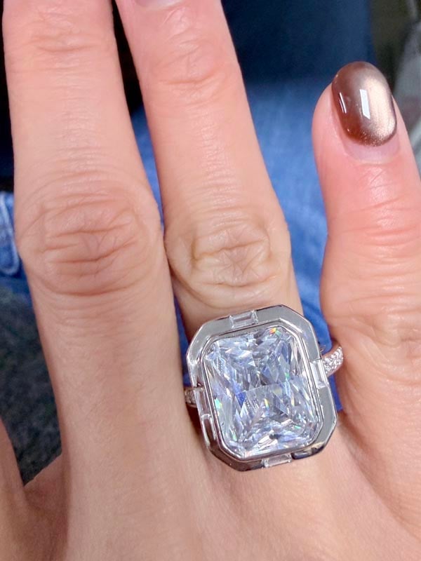 Italo Sterling Silver Set Side Stone 5.5 Carat Radiant Cut Engagement Ring For Women