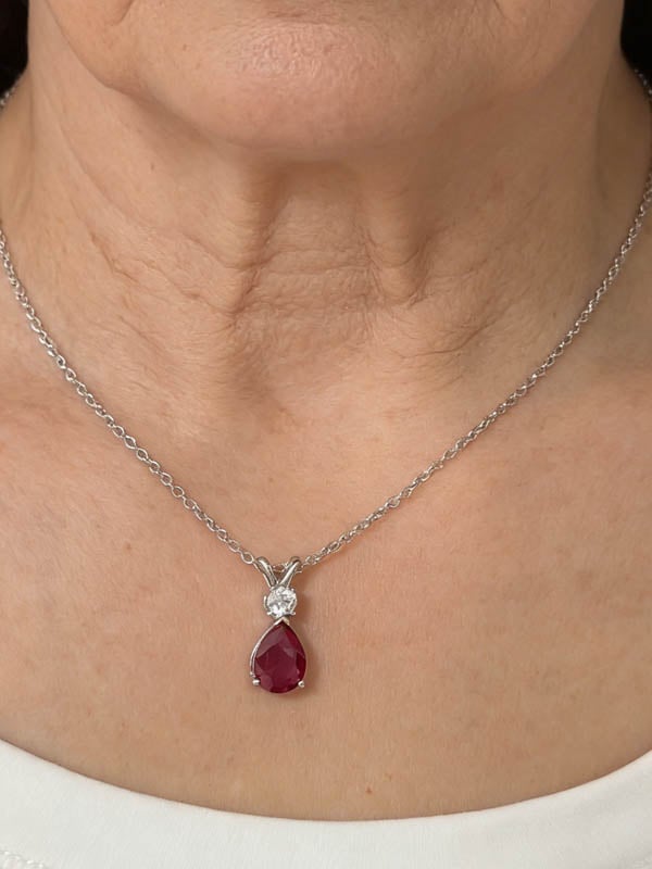 Italo Teardrop Pear Cut Ruby Pendant Necklace For Women