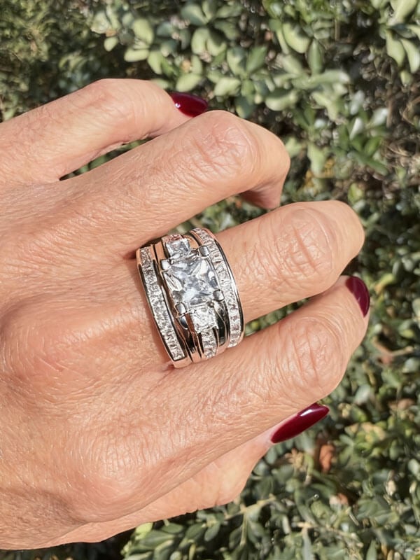 Product Meaning:This is an area where you and your jeweler might be speaking a different language. In the jewelry world, a wedding set includes the engagement ring, matching band for her and a band for him. A bridal set consists of an engagement ring and matching band for the bride, leaving the groom on his own for his band. Outside of the jewelry industry, the term wedding set is commonly used for both. Now you can speak your jeweler’s language and get what you want on Italo Jewelry.