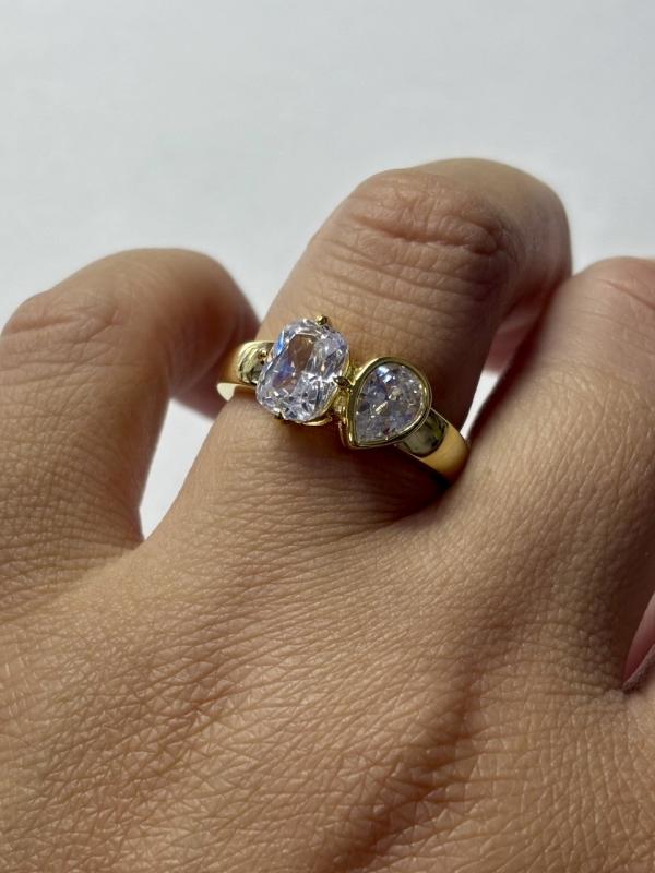 【Design】Admire the symbolic Toi Et Moi Ring design featuring 2.50 CT. TW pear and cushion cut white sapphres set in 18K gold plated sterling silver—this exquisite Toi Et Moi Ring represents two souls united in love!