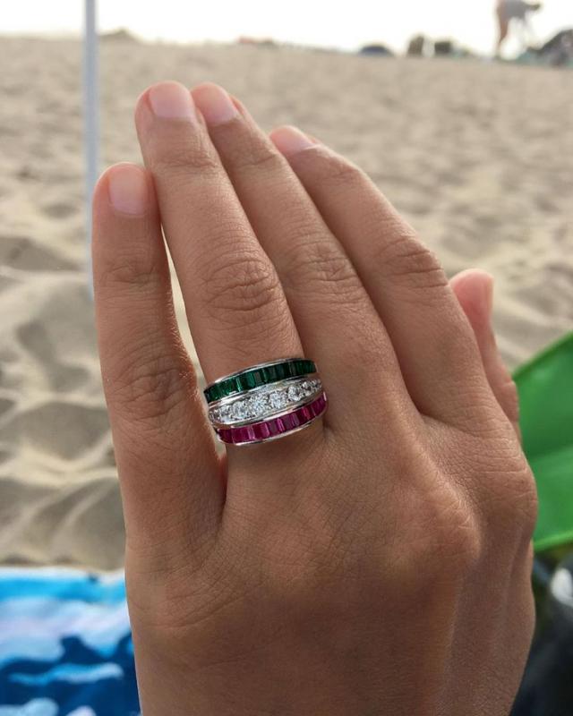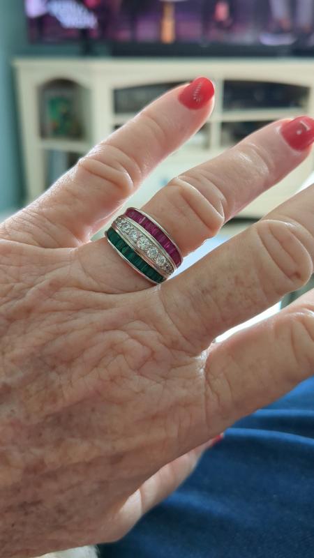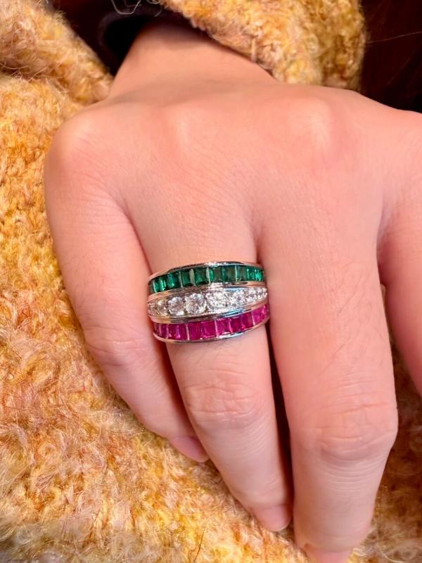 Italo Triple Row Emerald Green Wedding Band Ruby Ring