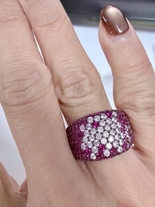 Italo Two Tone Micro Pave Ruby Ring Ruby Half Eternity Band For Women