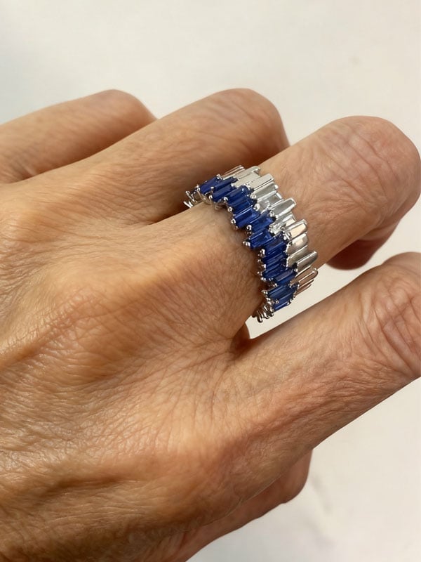 Italo Unique Blue Baguette Eternity Wedding Band For Women