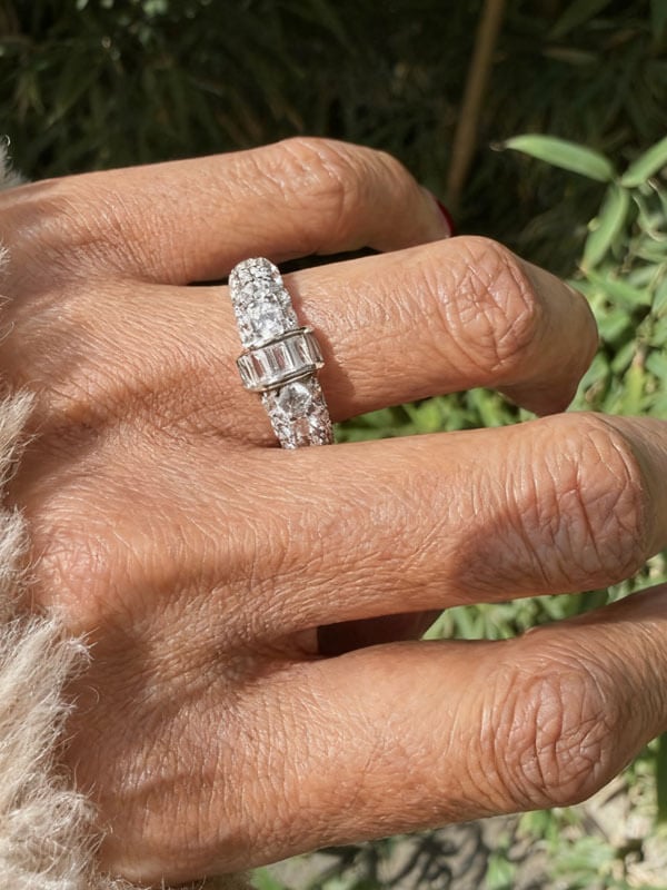 Italo Unique Channel Set Emerald & Round Cut Anniversary Band Ring