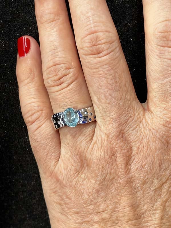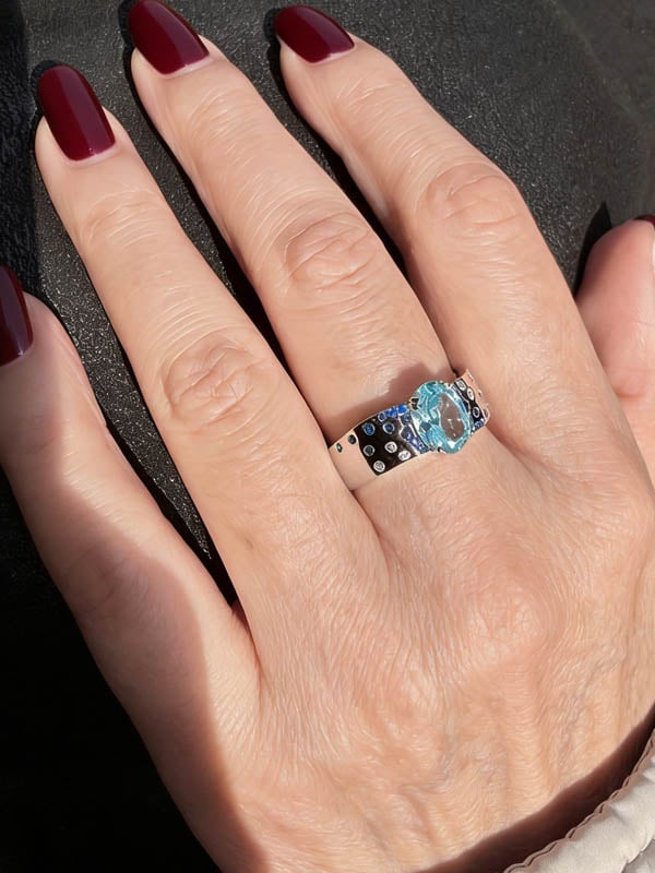 【Design】Discover our elegant wave flush setting featuring this stunning Aquamarine Unique Engagement Ring, this magnificent Aquamarine Unique Engagement Ring showcases 1.52 CT oval-cut aquamarines in premium 925 Sterling Silver weighing 5.10g!
