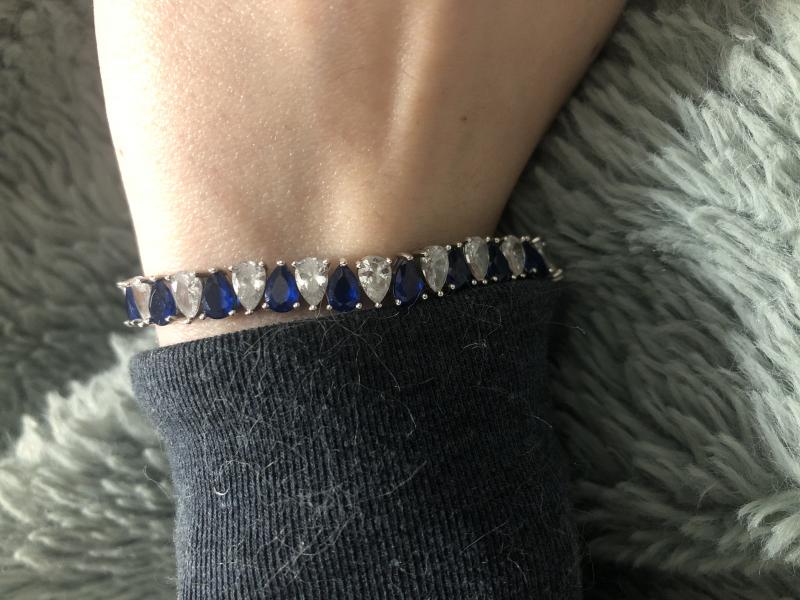 【Design】Experience elegance and timeless beauty with the White & Blue Sapphire Pear Cut Tennis Bracelet from ItaloJewelry. This Pear Cut Tennis Bracelet is meticulously crafted from 925 Sterling Silver, with a total metal weight of 25.40g. Adorned with an impressive 26.00 CT. TW of White & Blue Sapphires, each stone is expertly pear-cut and sized at 4.00*6.00 MM. With various lengths available—6'', 7'', 8'', and 9''—this Pear Cut Tennis Bracelet offers versatility to suit any wrist. A Pear Cut Tennis Bracelet like this is more than just jewelry; it's a statement of class and sophistication.