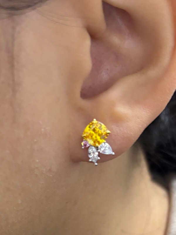 At the heart of the Two Tone Stud Earrings is the captivating yellow topaz sapphire, a gem renowned for its breathtaking luminance. Surrounding this star gemstone, the Two Tone Stud Earrings feature a medley of white, pink, and other sapphire varieties, shaped exquisitely as pear, marquise, and round. Every glance at the Two Tone Stud Earrings reveals a vibrant symphony of colors, ensuring they become the cynosure of all eyes.