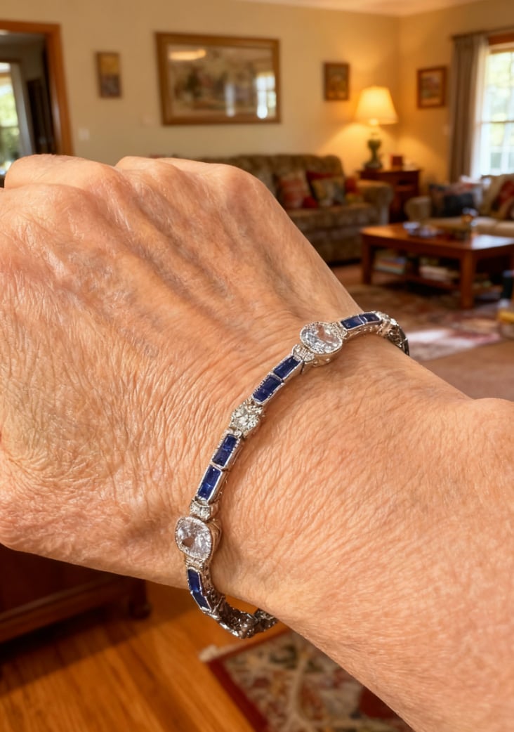 This Tennis Bracelet Women is not just a piece of jewelry, but a symbol of enduring love and commitment. The intricate design and the choice of white and blue sapphires convey a message of purity, loyalty, and depth in relationships. Gifting this Tennis Bracelet Women can signify a promise of everlasting love, making it a perfect present for anniversaries, engagements, or as a token of love. The timeless appeal and the profound symbolism of this Tennis Bracelet Women make it a must-have in every woman’s jewelry collection.